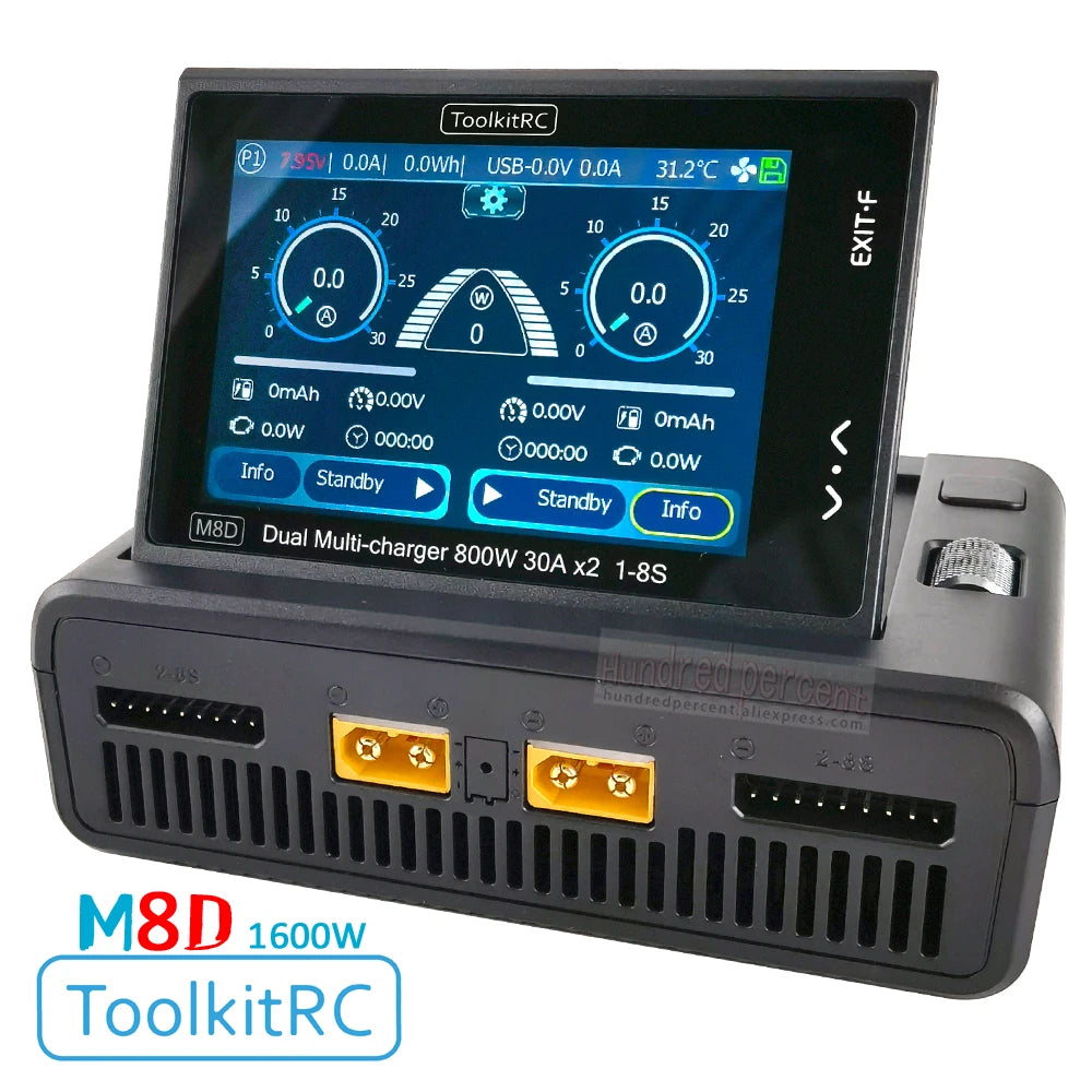 ToolkitRC M8D Smart Charger 2CH Touch Screen Dual Channel DC800W*2 30A 1-8S Lithium Battery Fast Charge RC Model Car FPV Drone