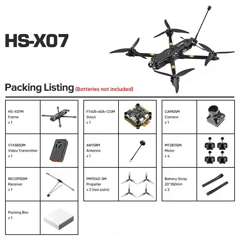 Whether you’re flying freestyle, racing, or performing aerial tests, the HS-X07M provides the precision, power, and endurance professionals demand.