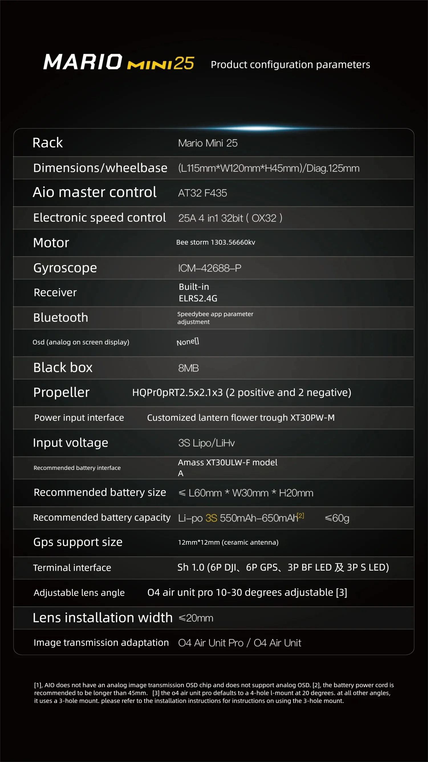 🔧 Key Specifications for SpeedyBee Mario Mini25 O4 Air...