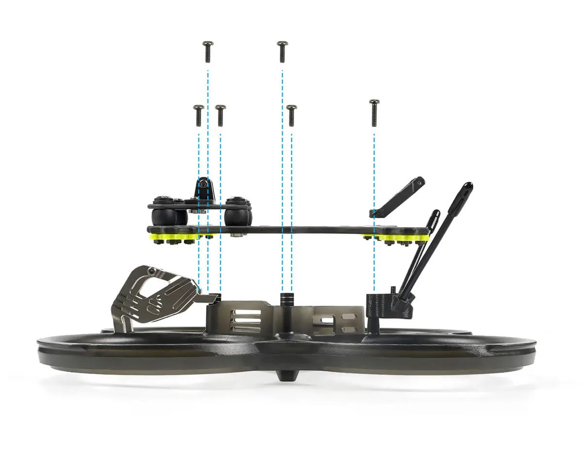 Adopts high-strength one-piece injection-molded propeller guard and high-toughness and impact-resistant PC material for injection molding. A ring-shaped Cob light strip is embedded in the propeller guard, and the light effect is carefully tuned. Light strip kits are optional for flexible options. 7075-T aircraft-grade aluminum column, finely polished frame design, only 6 screws need to be removed to separate the aircraft top plate and propeller guard. Easy to cope with the urgent need to replace the accessories, at any time to restore the state.