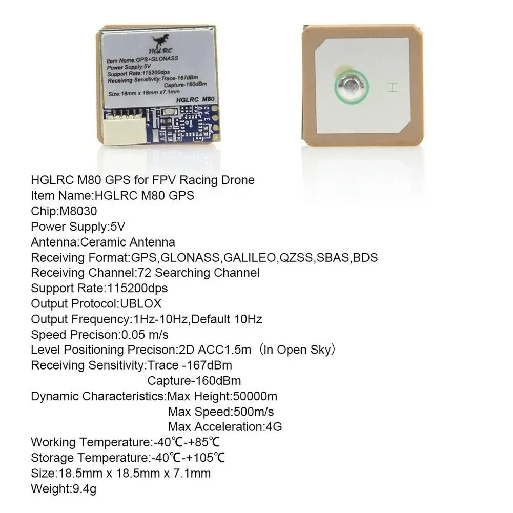 HGLRC M80 PRO GLONASS GALILEO QZSS SBAS BDS GPS Module QMC5883 Compass Gain Antenna for RC Airplane FPV Long Range Drones