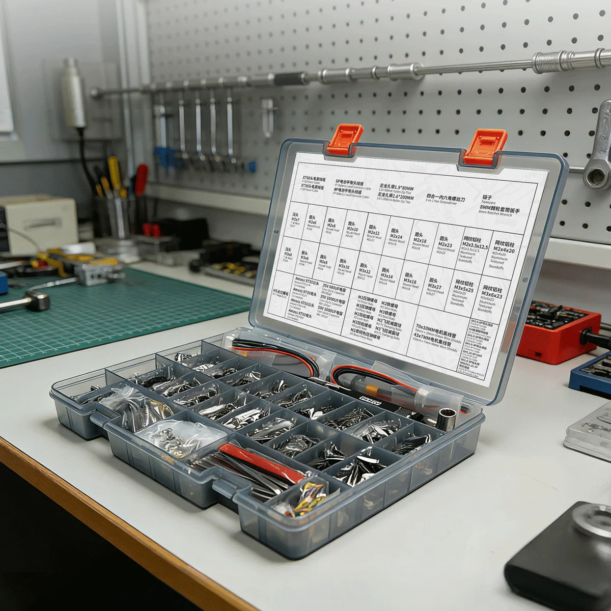 All-in-One FPV Maintenance Kit with 500+ Parts, Connectors, Capacitors & Tools in a Multi-Compartment Storage Box
