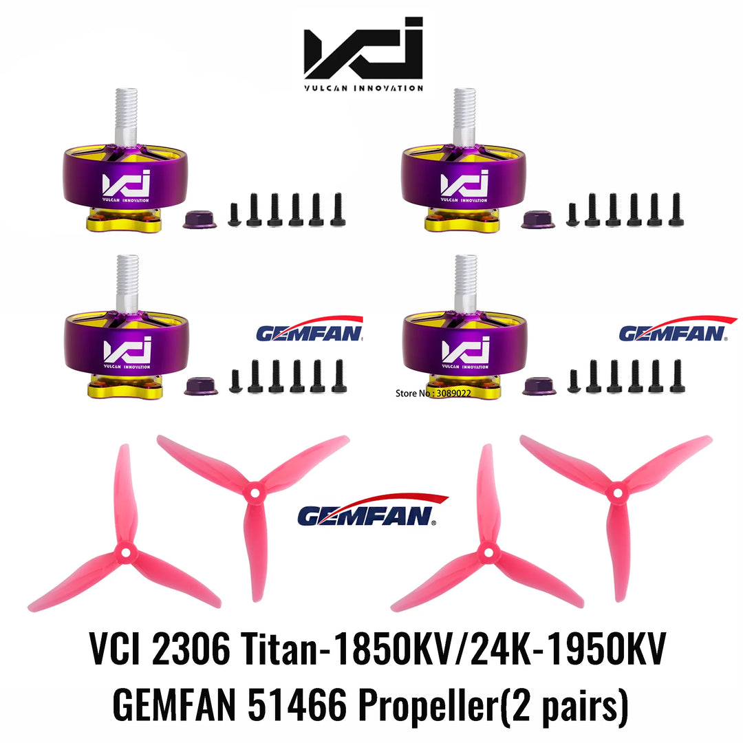 VCI HOBBY 2306 1850KV 1950KV 6S FPV Brushless Motor CW CCW GemFan 51466 Propeller for FPV RC Multicopter Freestyle Racing Drones