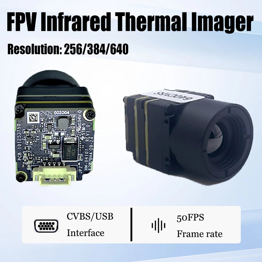 The FPV UAV Infrared Thermal Imager Lens is a professional thermal imaging camera featuring HD 50FPS frame rate, 256/384/640 resolution options, and CVBS/USB interface for FPV drones and enterprise UAV applications. This high-resolution thermal imaging system delivers real-time heat detection, professional-grade imaging, and versatile connectivity for search and rescue, inspection, surveillance, and industrial applications. Perfect for enterprise drone operators requiring thermal imaging capabilities for professional missions.