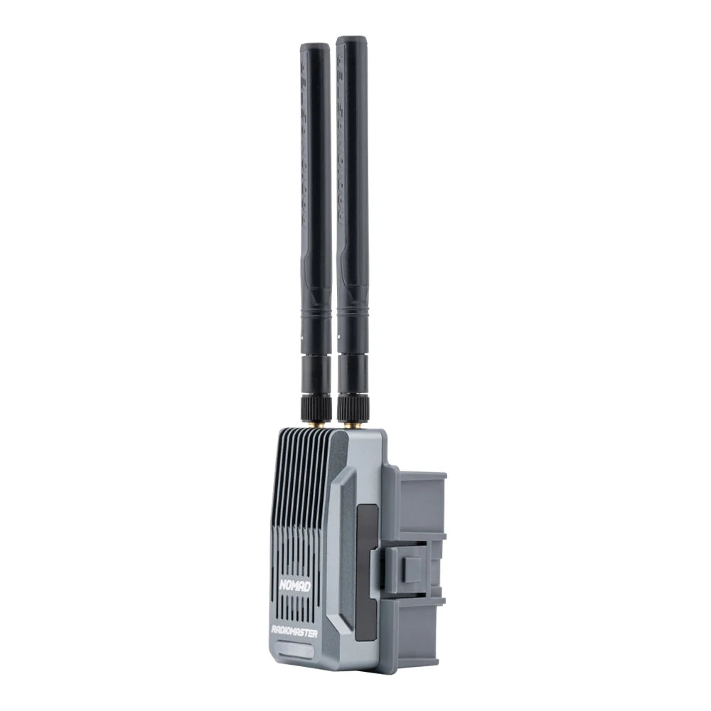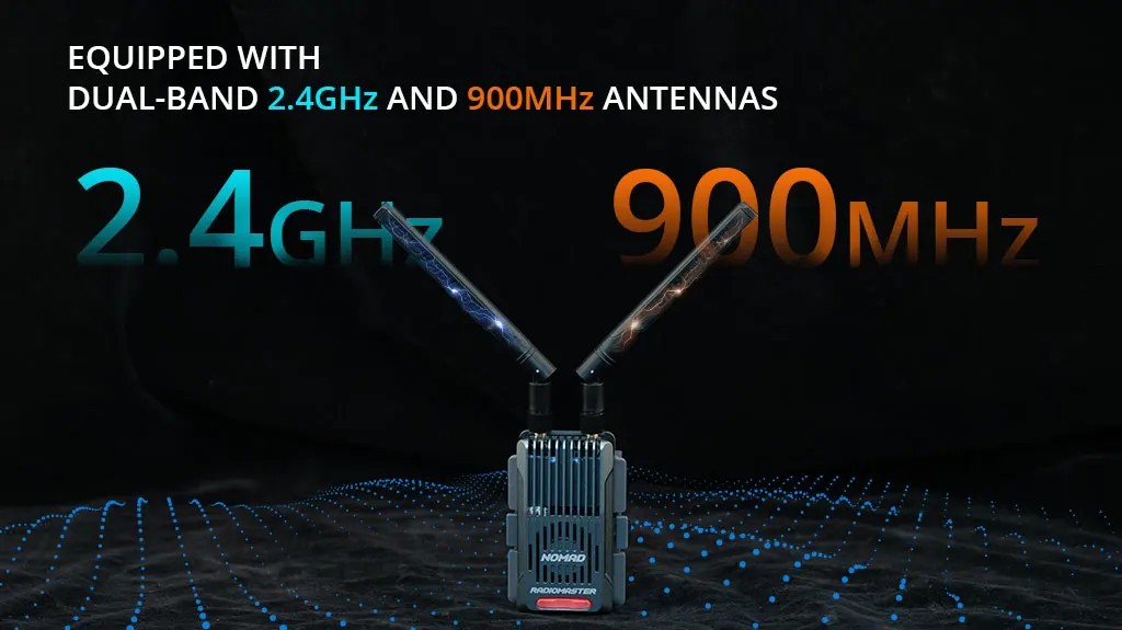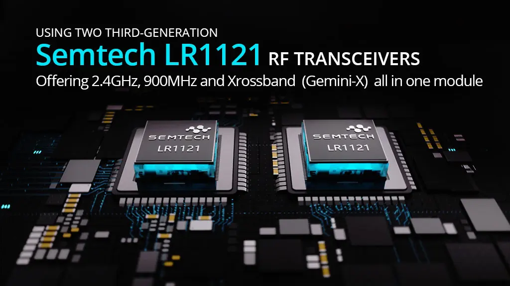 The Nomad is equipped with dual 3rd-generation Semtech LR1121 transceivers, allowing for operation with both 2.4GHz and 868/900MHz frequencies using the advanced Gemini Xrossband protocol. This technology enables the transmitter to send packets on both bands simultaneously, reducing the risk of packet loss due to interference.