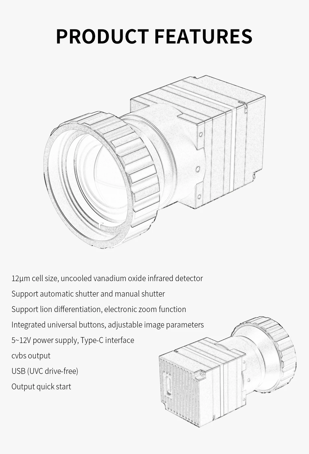 384x288 VOx Uncooled LWIR Thermal Camera,Industry Infrared Thermal Imager,CVBS Output,For UAV, Security & Outdoor Monitoring