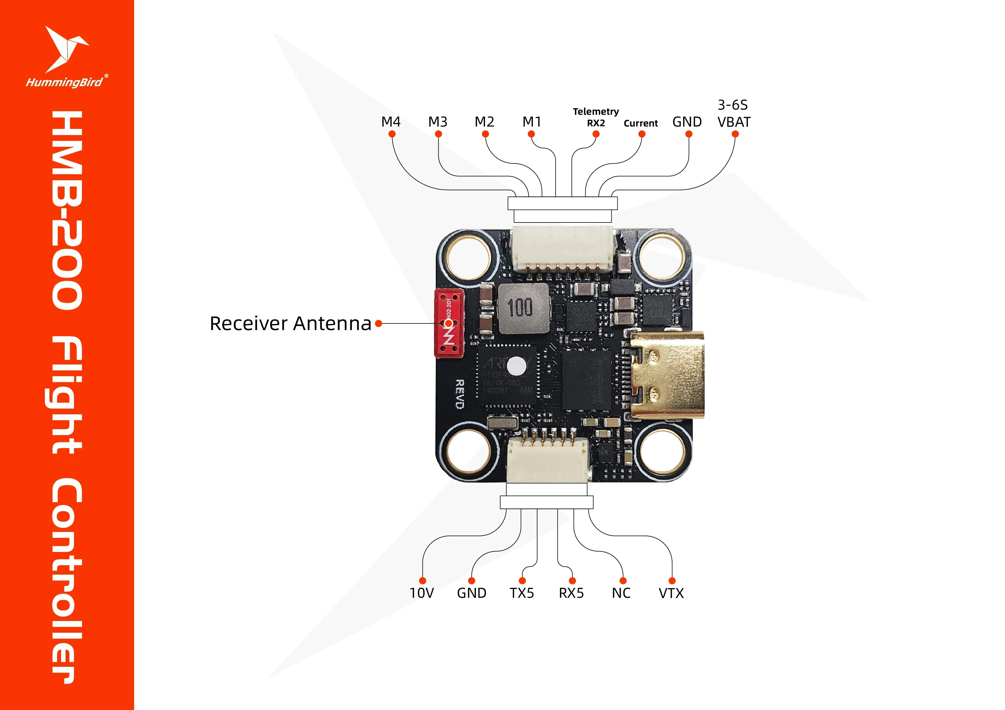 1x Hummingbird 200 RaceSpec Flight Controller – AT32F435 20x20 FC with Built-in ELRS 2.4GHz for FPV Racing