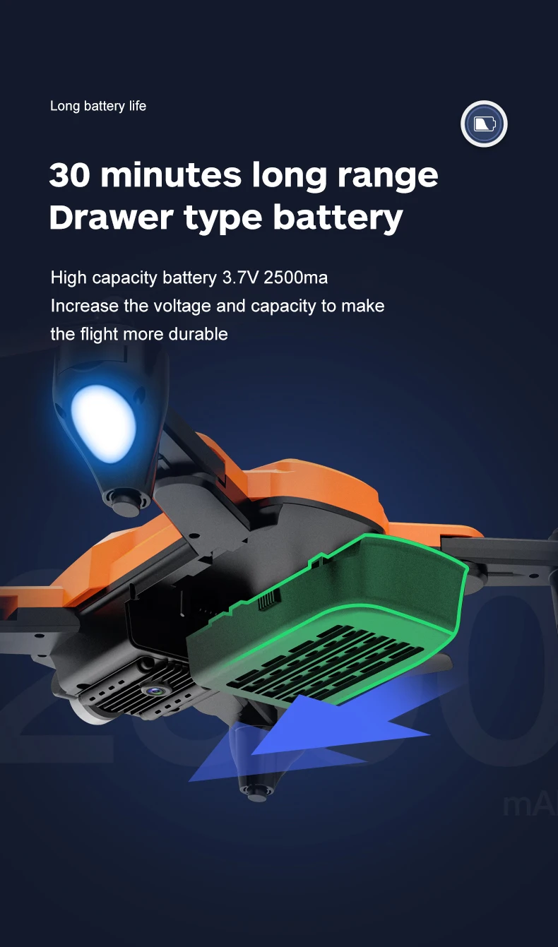-3.7V 500mah modular battery, easy to install and carry, battery life up to 12 minutes.