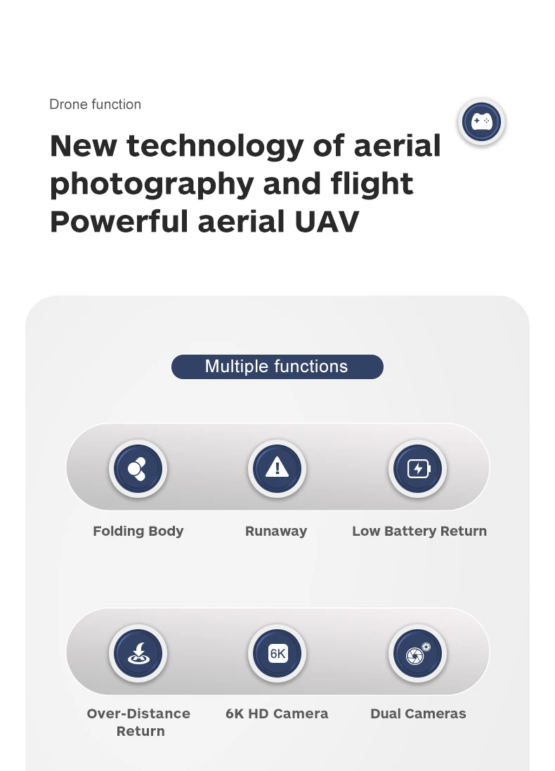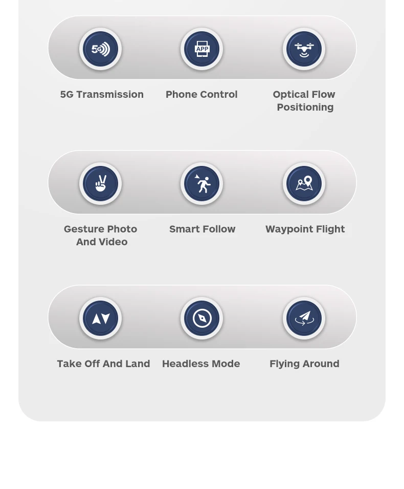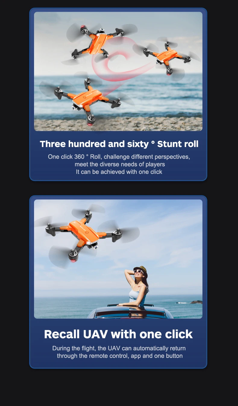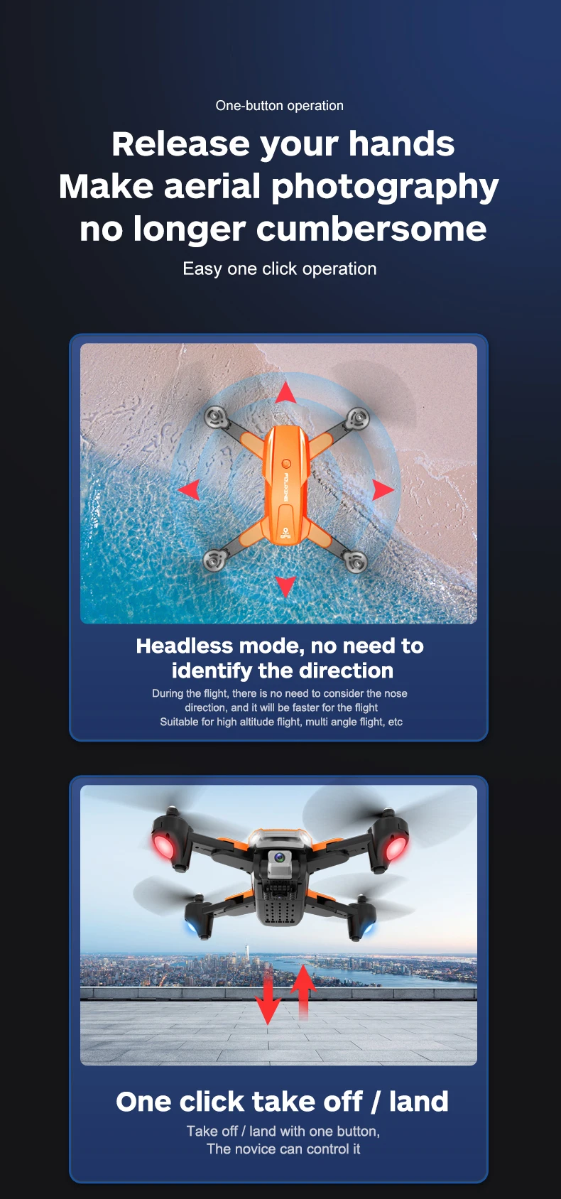 -One-click take-off/landing/return. Use the one-key return function to easily find the way home.