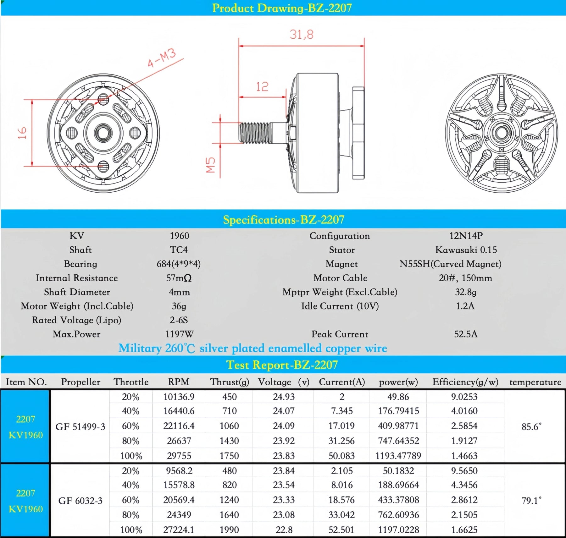 BZGNSS 2207 1960KV brushless Motor - 6S Turbo-Cooled for 5 inch FPV Racing Drones | Smooth Freestyle Performance (Gradient Camo)