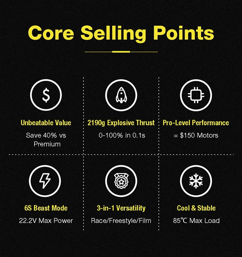 Racing pilots need lightweight, durable components. Cinematic creators need high-quality video. Freestyle flyers need durable crash-resistant gear.